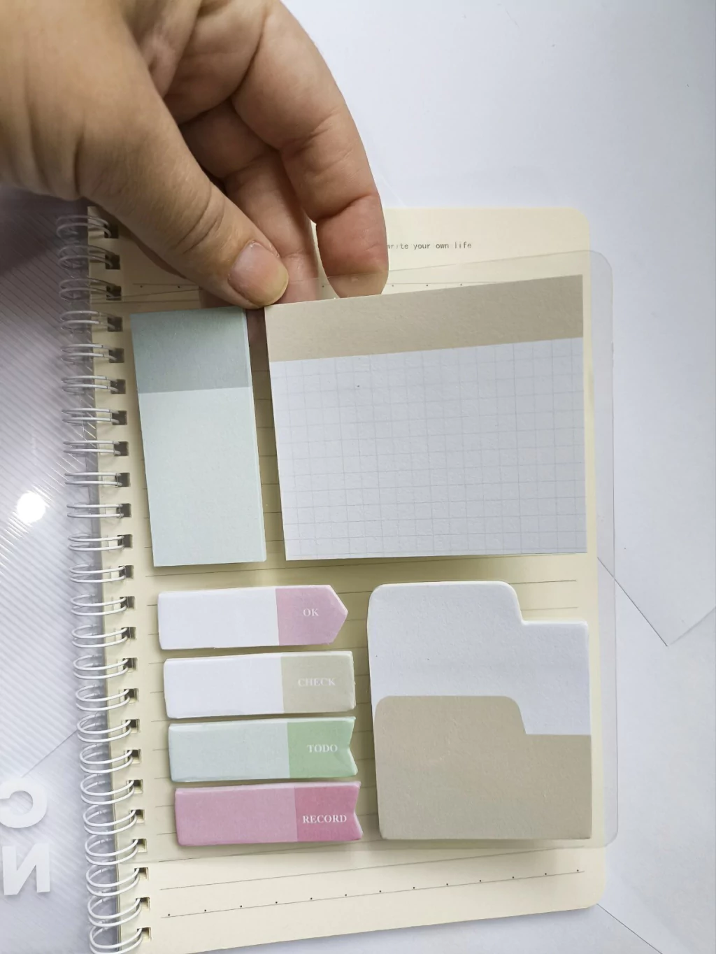 "Descubra o caderno espiral perfeito para organizar suas ideias e projetos! Nosso caderno vem com blocos adesivos, tornando suas anotações mais criativas e práticas. Ideal para estudantes, profissionais ou quem gosta de manter tudo em ordem com um toque de diversão. Leve, funcional e cheio de possibilidades — seu novo companheiro de estudos e trabalho está aqui!"