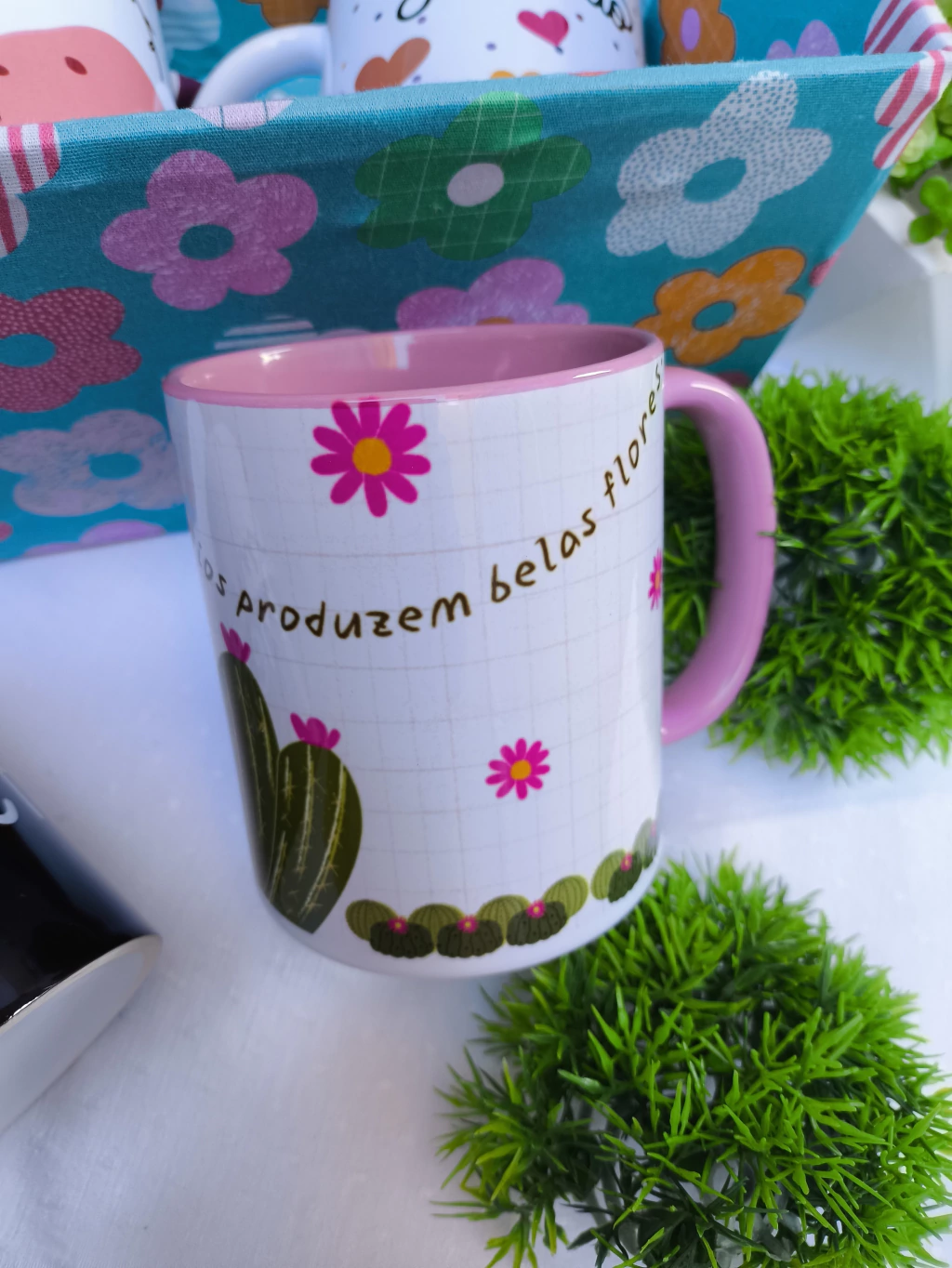 Caneca Cactos 350 ml, perfeita para quem ama um toque de natureza no dia a dia! Com design delicado de cactos, sua alça e interior em rosa vibrante trazem charme e alegria a cada gole. Feita em porcelana de alta qualidade, mantém sua bebida quente por mais tempo. Ideal para café, chá ou chocolate quente, é o presente perfeito para quem valoriza estilo e praticidade. Surpreenda-se com essa caneca encantadora!