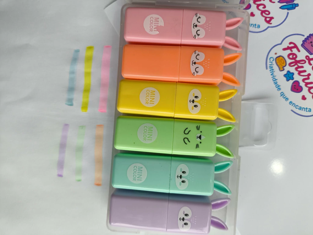 Deixe seus estudos e anotações muito mais divertidos com o nosso Kit Marca Texto coelho. Com design criativo e super fofo, cada marca-texto